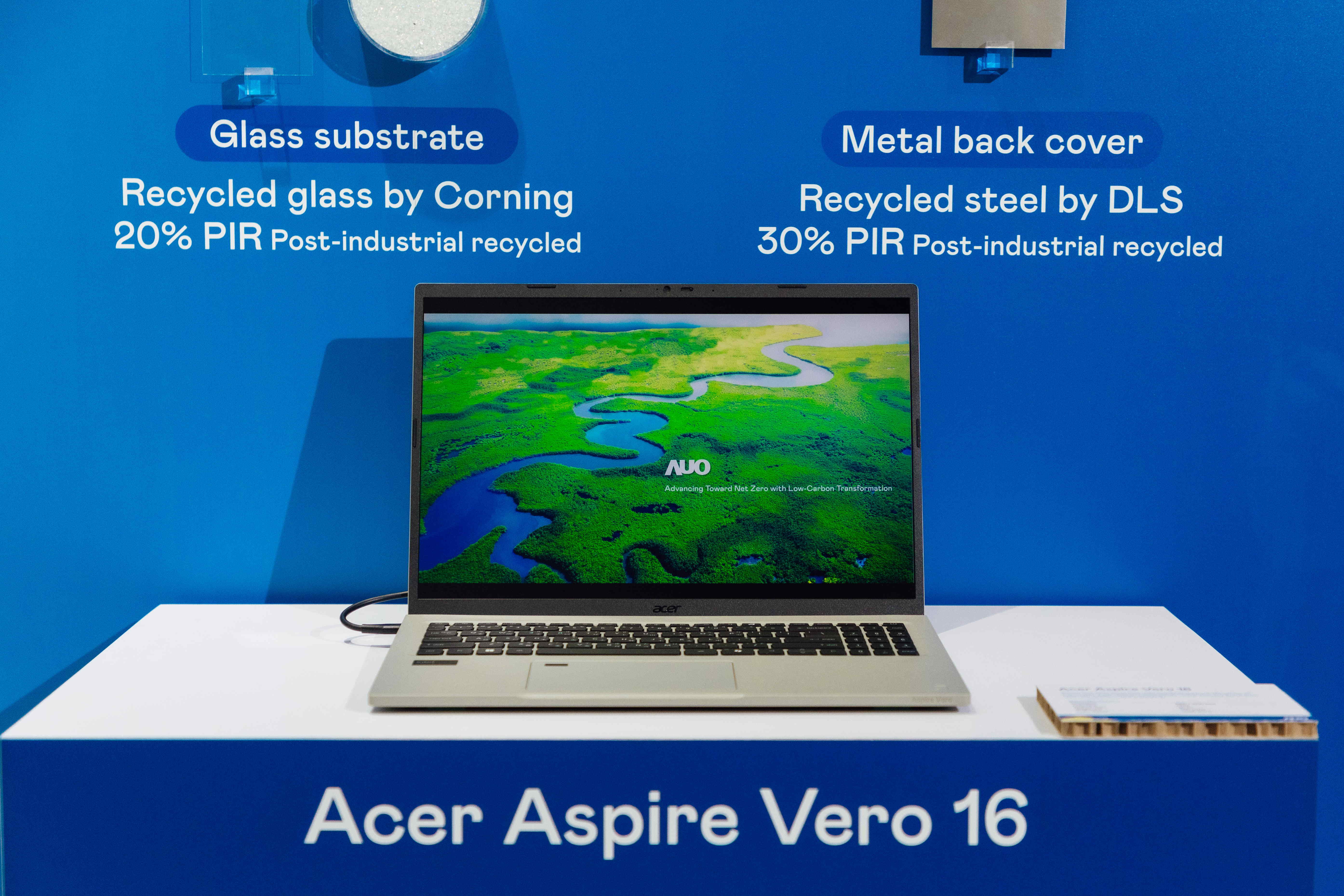 全球首款笔记型电脑采用8868体育100%绿电制造的面板,结合PCR外亦使用工业后回收材料(PIR),例如回收玻璃和金属,减少对环境的影响。